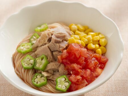 トマトとオクラの冷製そうめん 千年こうじや