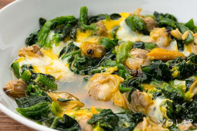 鉄分たっぷりあさりとほうれん草の卵とじのレシピ ソラレピ