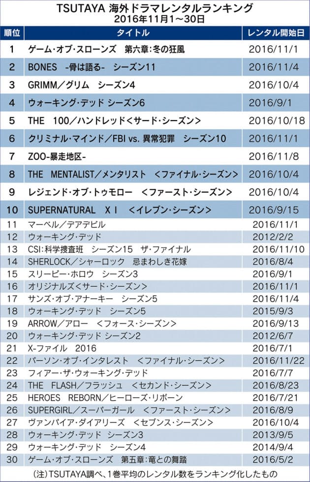 16年度 年間レンタルdvdランキング レンタル 海外tvドラマ Tsutaya ツタヤ T Site