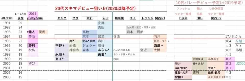 17 6 1ジュニア セクゾ年齢一覧表最新版 アイドル気録ビジネスnote ジャニーズで気づき学ぶ 自分ブランド マーケティング Note