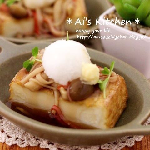 自家製厚揚げのきのこあんかけ のレシピ レピレピ
