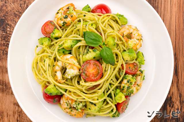 彩り鮮やか エビとアボカドのジェノベーゼパスタのレシピ ソラレピ