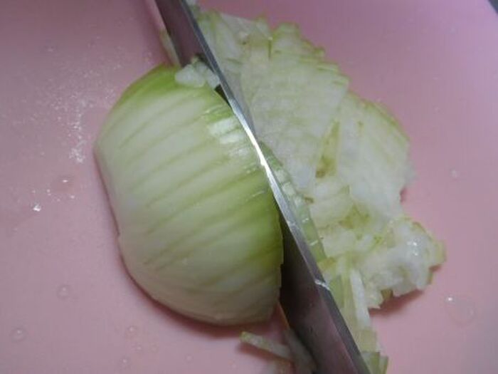 玉ねぎのみじん切り 包丁を使った切り方と 道具を使った簡単なやり方 やまでら くみこ のレシピ