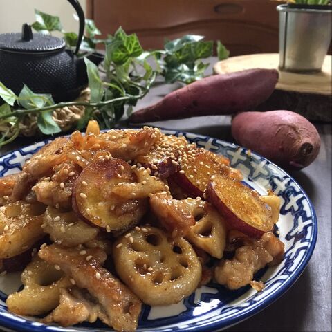 サツマイモとレンコンの豚こま甘辛炒め 暮らしニスタ