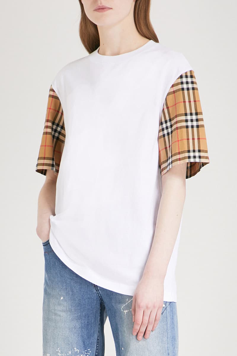 Burberry Plaid Checked Sleeve White T Shirt Hypebae