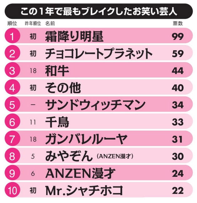 ブレイクした芸人 霜降り明星1位 モノマネ勢が躍進 エンタメ Nikkei Style