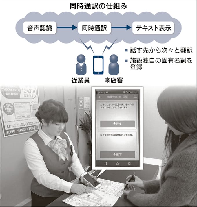 スマホ使い同時通訳 軽井沢のアウトレットで導入 日本経済新聞