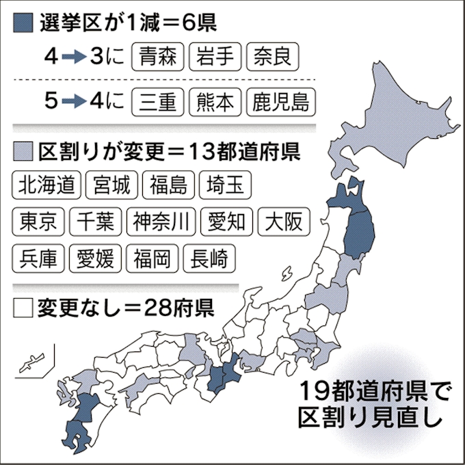 衆院 見直し対象97選挙区 0増6減 区割り勧告 日本経済新聞