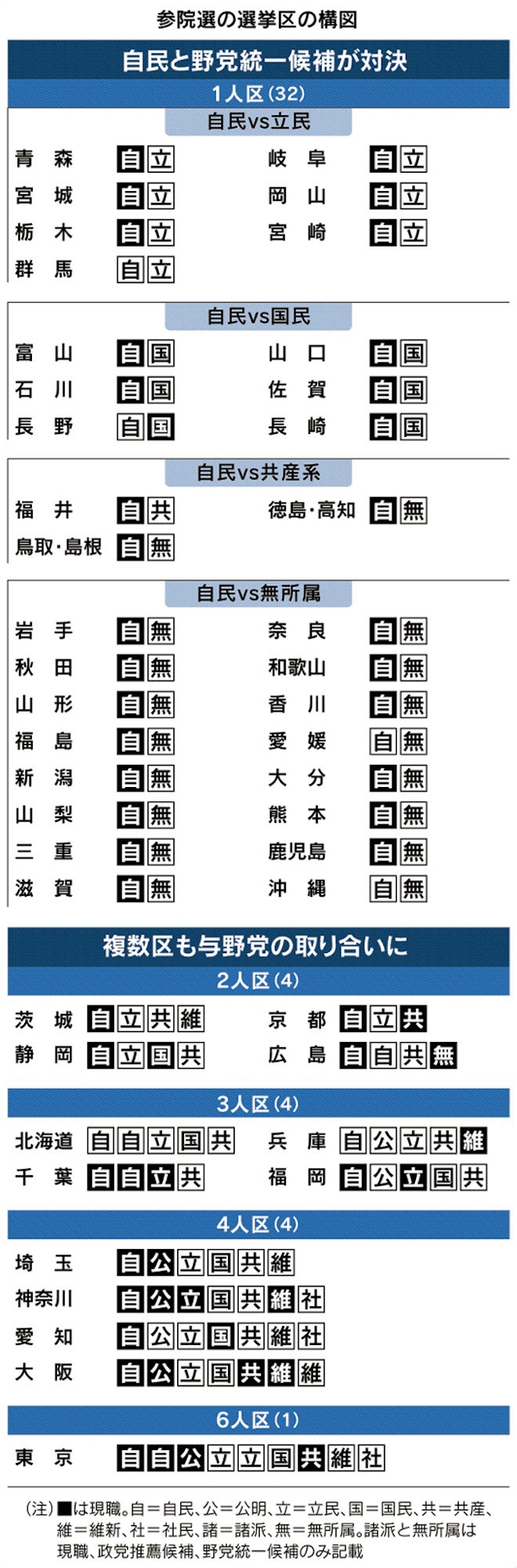 1人区で与野党一騎打ち 複数区は混戦 参院選公示 日本経済新聞