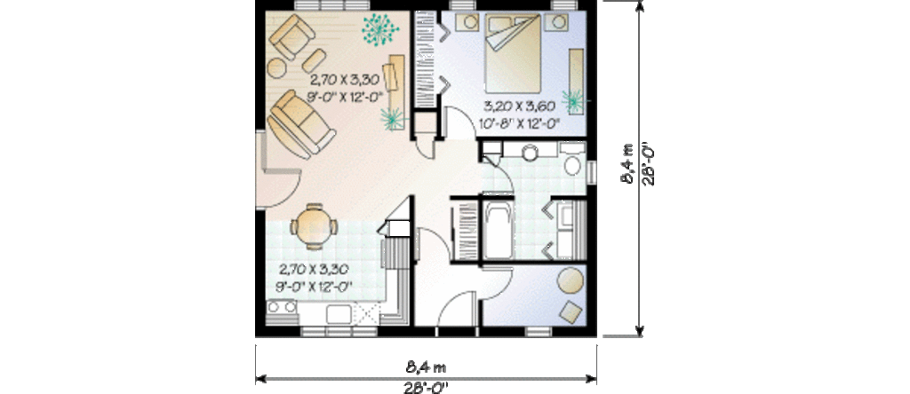 House Plan Traditional Style With 864 Sq Ft 2 Bed 1 Bath