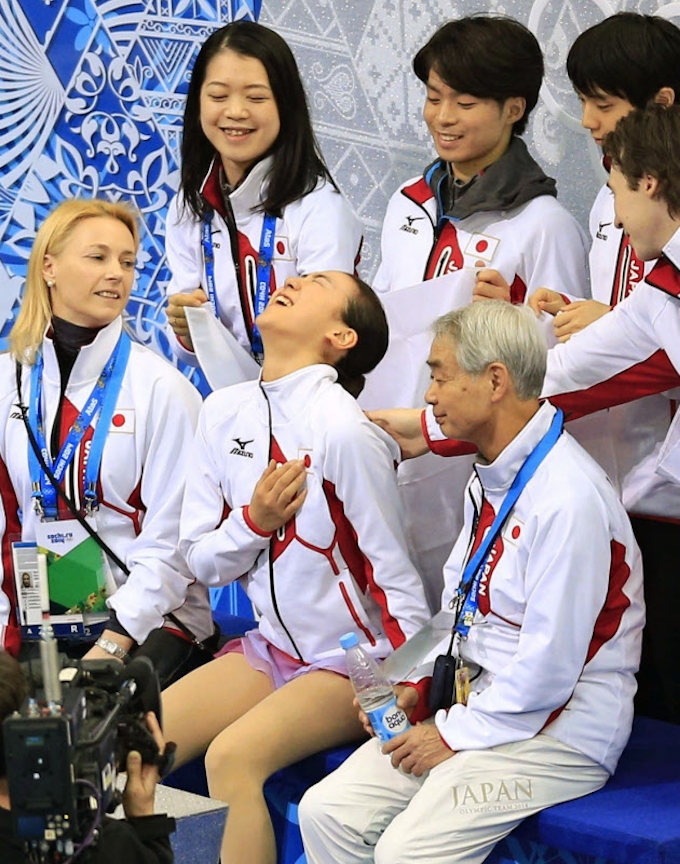 写真特集 フィギュア団体女子フリーの演技を終えた鈴木明子の採点結果を待つ日本チーム 山本裕之撮影 鈴木 ソチで有終の8位 14ソチ オリンピック 五輪 朝日新聞デジタル