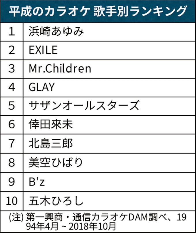 平成のカラオケで最も歌われた楽曲は 歌手1位は 浜崎あゆみ Itmedia ビジネスオンライン