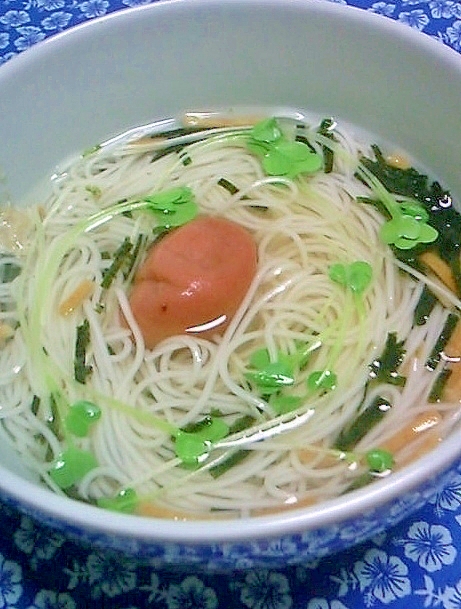 お茶漬け海苔にめんつゆちょい足し 梅載せにゅうめん レシピ 作り方 By 桜39桜39 楽天レシピ
