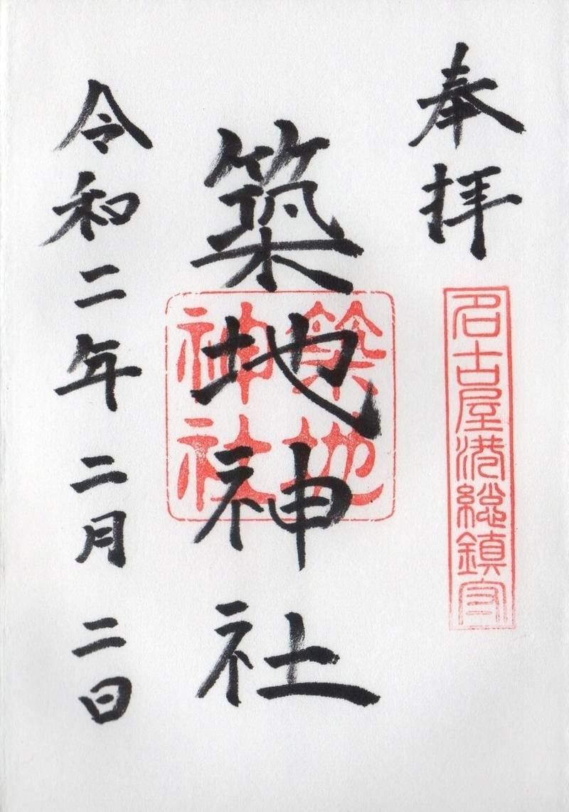 名古屋港にある名古屋港総鎮守の築地神社の御朱印 Gosyuin 御朱印 写真共有サイト フォト蔵
