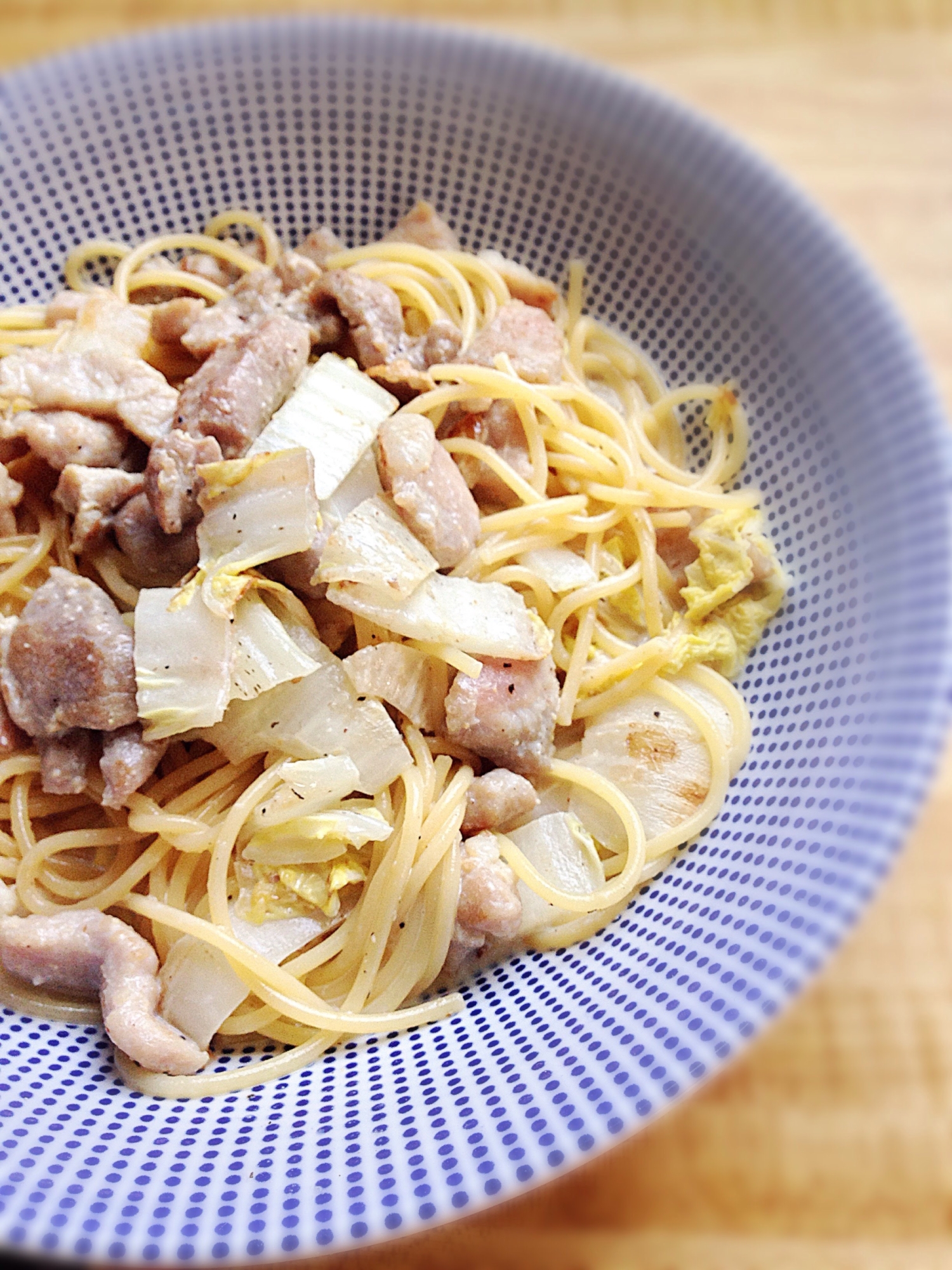 和洋折衷 白菜と豚肉の味噌クリームパスタ200円 写真共有サイト フォト蔵