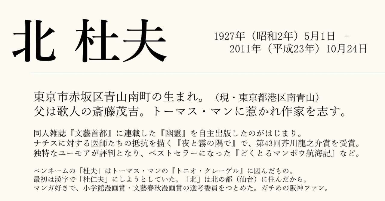 素読 北杜夫に見る 体つきの文章表現 ななくさつゆり 福岡の情景小説家 Note
