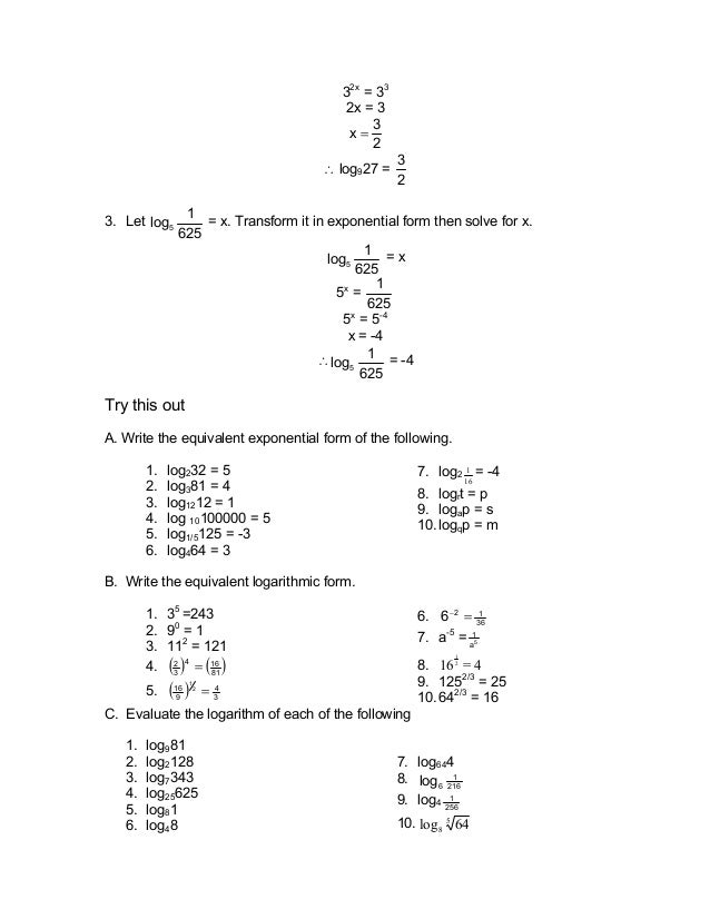 Pdf Worksheet 2 7 Logarithms And Exponentials Section 1 Logarithms Alib Budiyanto Academia Edu