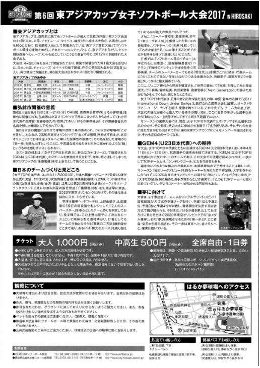 第6回東アジアカップ女子ソフトボール大会17 In Hirosaki 観戦チケット先行販売中 弘前市