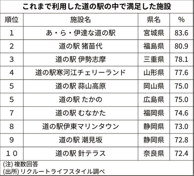 道の駅の人気ランキング 1位は宮城県 リクルート系 日本経済新聞