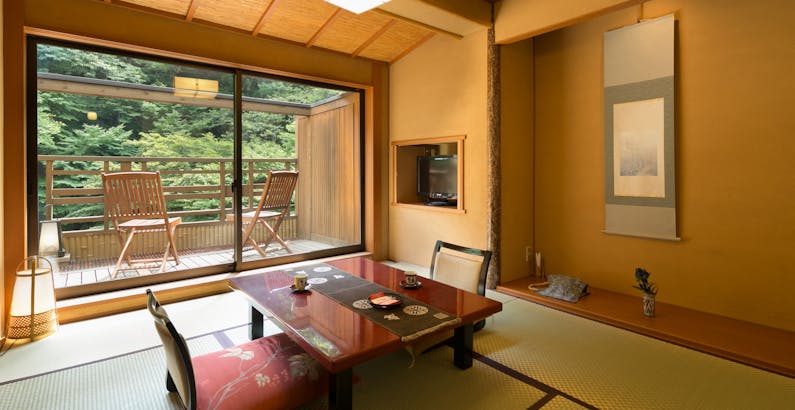 二人の距離がグッと縮まる川側和風6畳 展望テラス付 山吹 バスチケット代行手配 東京 四万温泉 安心 楽々 乗ってるだけ で四万温泉 直行バスプランプラン 四万温泉 豊島屋 一休 Comキラリト