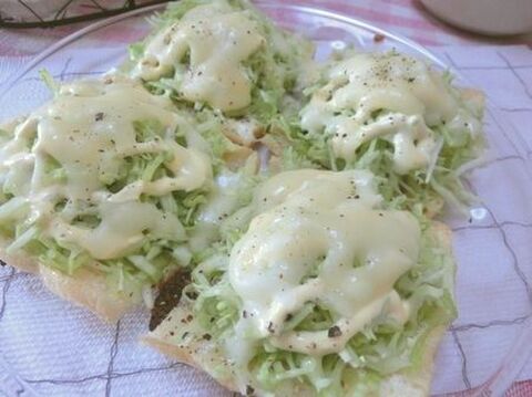 下から焼くとクリスピー 千切りキャベツの油揚げピザ 暮らしニスタ
