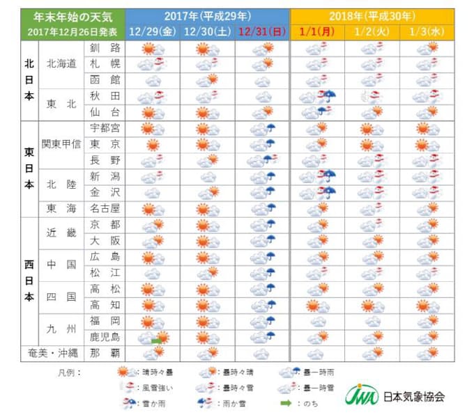 日本気象協会 年末年始 17年12月29日 18年1月3日 の天気を発表 日本経済新聞