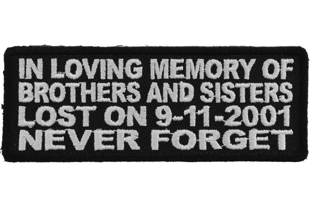 Amazon Com In Loving Memory Of Brothers And Sisters Lost On 9 11 01 Never Forget Patch 4x1 5 Inch Embroidered Iron On Patch Arts Crafts Sewing